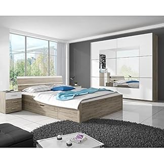 631,93 €Produkt kaufenLomadox Schlafzimmer Doppelbett Kombination mit Kleiderschrank und 2 Nachttischen in Sanremo Eiche Nb. mit weiß Liegefläche 160×200 cm