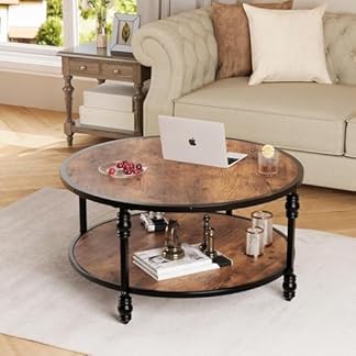 999,00 €Produkt kaufenOPULENTHOME Großer Couchtisch, rund, aus Massivholz, Wohnzimmertisch im Vintage-Stil, 2 Ebenen, Beistelltisch mit Säulenfüßen, für Wohnzimmer, Büro, 72 x 72 x 48 cm