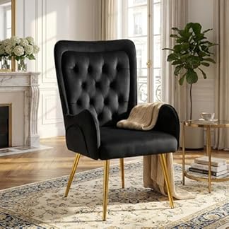 559,00 €Produkt kaufenHellove Ohrensessel mit Golden Metallbeinen, Samt Relaxsessel Wohnzimmer Bequemer Schminktisch Stuhl Polsterstuhl Armchair Kleiner Sessel, Lesesessel Loungesessel für LivingRoom Schlafzimmer Schwarz
