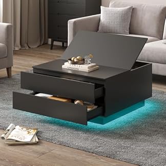 249,99 €Produkt kaufenKEEPREAPER Couchtisch, Wohnzimmertisch mit LED Beleuchtung, Beistelltisch mit 2 Schubladen und aufklappbarer Tischplatte, für Wohnzimmer 78x78x40cm (Schwarz)