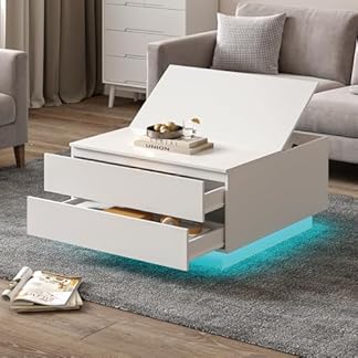 156,99 €Produkt kaufenKEEPREAPER Couchtisch, Wohnzimmertisch mit LED Beleuchtung, Beistelltisch mit 2 Schubladen und aufklappbarer Tischplatte, für Wohnzimmer 78x78x40cm (Weiß)