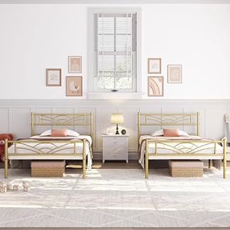 Angebot! Ursprünglicher Preis war: 100,99 €91,44 €Aktueller Preis ist: 91,44 €.Produkt kaufenYaheetech 2er-Set Metallbett Bettrahmen Bettgestell mit Lattenrost Einzelbett Singlebett Gästebett 90 x 200 cm/Antikgold