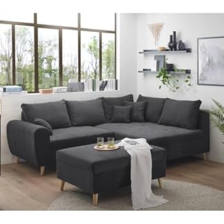 1998,00 €Produkt kaufenLomadox Ecksofa mit Hocker und 8 Kissen in anthrazit modern | L-Form mit Recamiere rechts