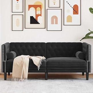 992,15 €Produkt kaufenFrdhee Wohnzimmer Couch Ecksofa,Chesterfield-Sofa mit Kissen Schwarz 174 x 74.5 x 70.5 cm Samt für Schlafzimmer, Büro, Wohnung, Einfache Montage