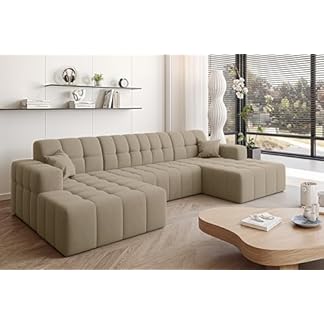 Kaiser Möbel – Ecksofa mit Wohnlandschaf, Eckcouch U Form, Bigsofa XXL, Polstersofa, Bequemes Couch mit Ottomanen für Wohnzimmer, Relaxsofa, Rückenkissen, Zierkissen, Lounge-Set U-Form, DANI U, Beige