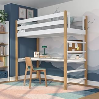 1064,95 €Produkt kaufenN01 Hochbett mit Schreibtisch, Etagenbett 90×200 cm, aus Eichenholz, 2 Leitermontageseiten: Links oder rechts, sichere abgerundete Kanten, Stabile Massivholzkonstruktion, Weißeiche