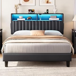 49,99 €Produkt kaufenRolanstar Bettgestell mit LED, Metallbett mit USB-Ladestation & Holzkopfteil mit Stauraum, Doppelbett mit Stauraum unter dem Bett, perfekt für Schlafzimmer, 140 x 200 cm
