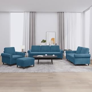 1164,99 €Produkt kaufenRunheo 4-TLG. Sofagarnitur mit Kissen, Blau Samt, Robuster Holzrahmen, Bequemes Wohnzimmer-Möbelset, Modernes Design, Inklusive Sessel, 2er-Sofa, 3er-Sofa und Fußhocker