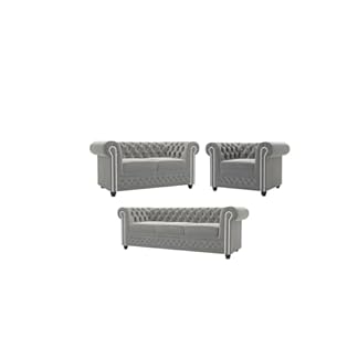 2219,99 €Produkt kaufenS-Style Möbel Set Sofa 3 Sitzer 2 Sitzer Sessel Couch 3 Stück Freistehend Massivholzfüße Braun Samtstoff Elegant Gesteppt Silberne Metallniete York Grau