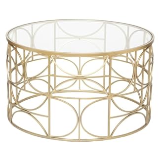 Angebot! Ursprünglicher Preis war: 41,99 €35,90 €Aktueller Preis ist: 35,90 €.Produkt kaufenAtmosphera – Runder Couchtisch, Gold – Durchmesser 71 x Höhe 41 cm – Tischplatte aus gehärtetem Glas, Eisengestell – Für Wohnzimmer und Schlafzimmer