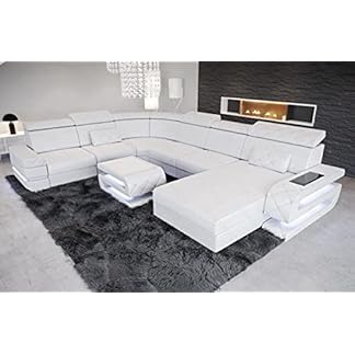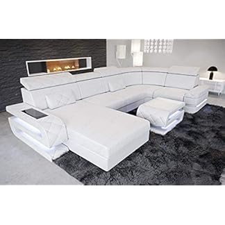 229,99 €Produkt kaufenSofa Bellagio U Form Wohnlandschaft Leder Couch mit LED Ledersofa mit Ottomane (Ottomane rechts, Weiß-Schwarz)