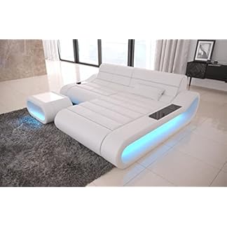 3949,00 €Produkt kaufenSofa Concept L Form kurz in Leder – mit LED Beleuchtung, ergonomische Rückenlehnen, Recamiere/Lederfarben wählbar/Ausrichtung Ottomane wählbar (Ottomane rechts, White)
