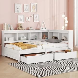 179,95 €Produkt kaufenAoskem Daybett Einzelbett Bett 90×200 cm Kinderbett, Tagesbett mit Stauraum Regale & 2 Schubladen, mit Ladebuchse, Holzbett Jugendbett Funktionsbett, Bettgestell mit Lattenrost, Ohne Matratze, Weiß