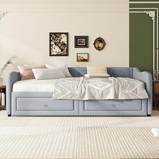 179,95 €Produkt kaufenShye Daybettt, 90x200cm Tagesbett mit ausziehbarem Bett,Schlafsofa mit Zwei Schubkästen, Einzelbett(Ohne Matratze), Leinen, minimalistisches Styling (Grau)