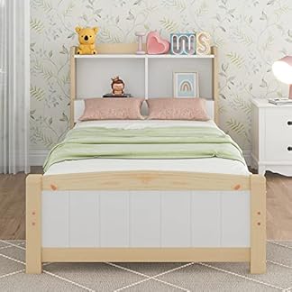 936,61 €Produkt kaufenHolzbett,Einzelbett,Massivholzbett Stauraum-Kopfteil Bett, Bettgestell mit Lattenrost mit Kopfteil,Kinderbett Jugendbett Kiefer massiv Natürlich und Weiß,90 x 200 cm (Mit Matratze)