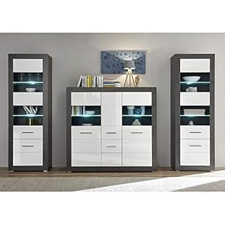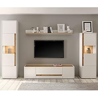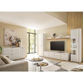 795,59 €Produkt kaufenLomadox Wohnwand Set 5-teilig Wohnzimmermöbel weiß mit Eiche Modern 1 Vitrine, 1 Hochschrank, 1 Lowboard,1 Wandboard, 1 Sideboard inkl LED Beleuchtung