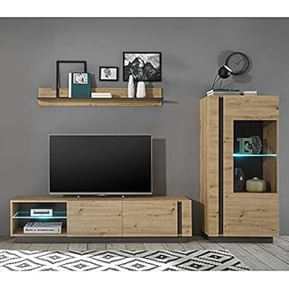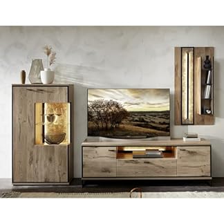 399,99 €Produkt kaufenLomadox Beleuchtete Wohnwand in Eiche Artisan Nb. mit Absetzungen in Graphit grau, B/H/T: ca. 270/165/40 cm