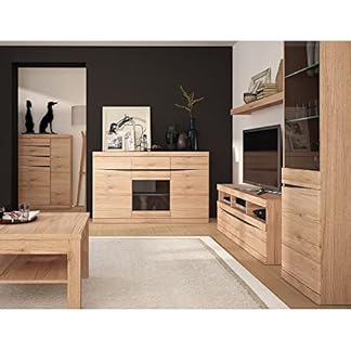 1105,10 €Produkt kaufenLomadox Wohnzimmer Set mit Wohnwand Schrankwand Media Wand TV Lowboard Vitrine Wandboard Couchtisch 75×75 cm Sideboard Highboard in Eiche Nb.