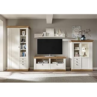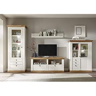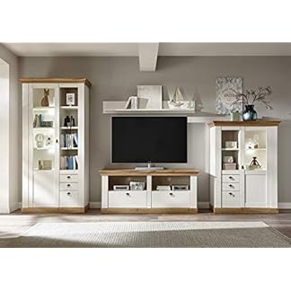 3879,09 €Produkt kaufenLomadox Wohnwand im Landhaus-Stil in Pinie weiß/Wotan Eiche Nb. inkl. Vitrine & Highboard