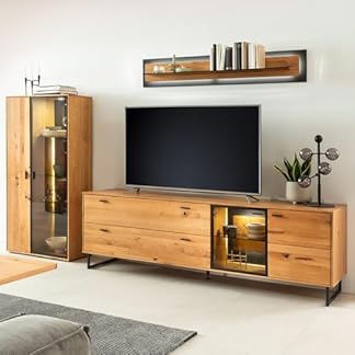 3530,30 €Produkt kaufenLomadox Wohnmöbel Wohnwand, 3-teilig, Eiche teilmassiv, Vitrine, Wandboard, Lowboard, inkl. Beleuchtung