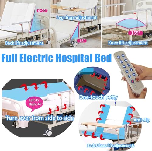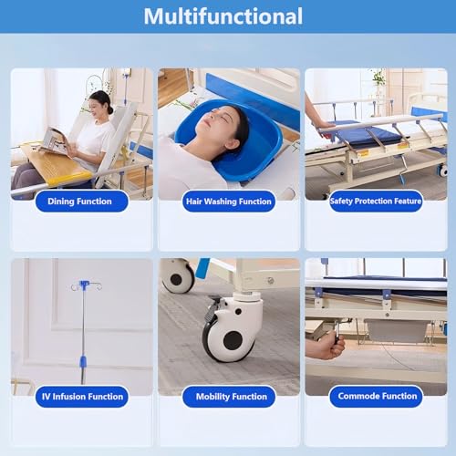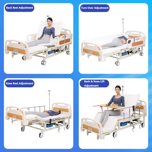 Mühelose Pflege mit integrierten Pflegefunktionen: Dieses Modell statt elektrische Krankenhausbetten statt den Heimgebrauch umfasst eine abnehmbare Bettpfanne (25×20 cm) und ein Waschbecken statt die Haarwäsche (45×35 cm) statt eine effiziente Hygiene. Ausgestattet mit einem hölzernen Esstablett, 5-stufigen Edelstahl-Schutzgittern, einem verstellbaren Infusionsständer und 4 Feststellrollen vereinfacht es die täglichen Pflegeabläufe. Die 3D-Hochdichte-Schaummatratze (6 cm Dicke) und das verstellbare Bett statt Senioren bieten ergonomische Unterstützung, speziell auf die Bedürfnisse von Heimpflege oder Hospize ausgerichtet