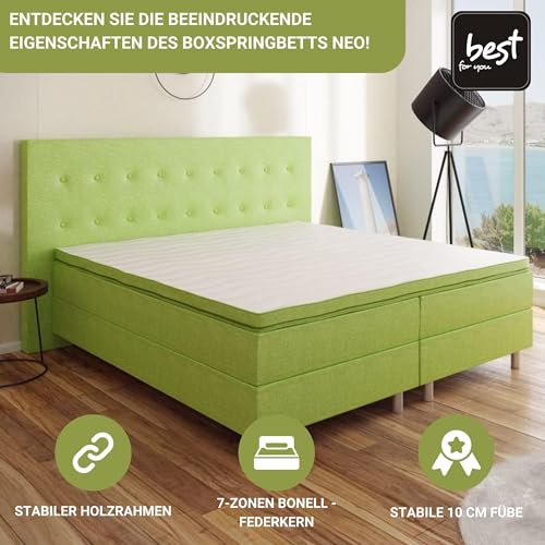 Hervorragender Komfort mit 7-Zonen-Bonell-Federkern: Dieses Boxspringbett 90×200 bietet eine Matratze mit 7-Zonen-Bonell-Federkern, der umfassende Unterstützung und optimale Varietät an den Körper gewährleistet. Der Härtegrad H3 sorgt für ausgewogenen Komfort in verschiedenen Schlafpositionen. Ein 7 cm dicker Komfortschaum-Topper mit gestepptem Bezug und Reißverschluss ermöglicht einfache Pflege und sorgt für erholsamen Schlaf. Ideal für langfristige Nutzung.