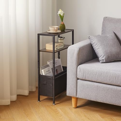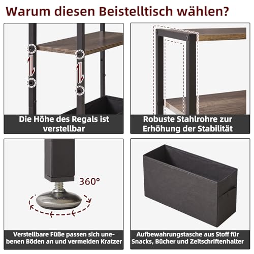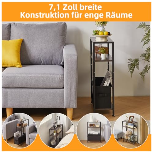 3. Vielseitige Funktionalität: Dieser schmale Tisch ist auf Vielseitigkeit ausgelegt. Er kann qua Sofa-Beistelltisch, Nachttisch, Ecktisch usw. verwendet werden. Auf der Ober- und der zweiten Platte können Sie eine Lampe, einen Bilderrahmen, eine Couch und ein Telefon festmachen und aka Ihre Bücher und einige Kleinigkeiten darauf platzieren Gegenstände im unteren Ablagekorb.