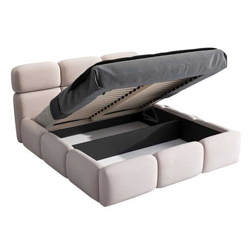 Der integrierte Bettkasten unter der Liegefläche bietet großzügigen Stauraum für Bettwäsche, Decken und Kissen. Der Öffnungsmechanismus ist leichtgängig und für den täglichen Gebrauch konzipiert.
