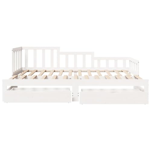 Betten & Zubehör-Betten & Bettrahmen-Tagesbett mit Ausziehbett und Schubladen Weiß 90×200 cm Massivholz Kiefer