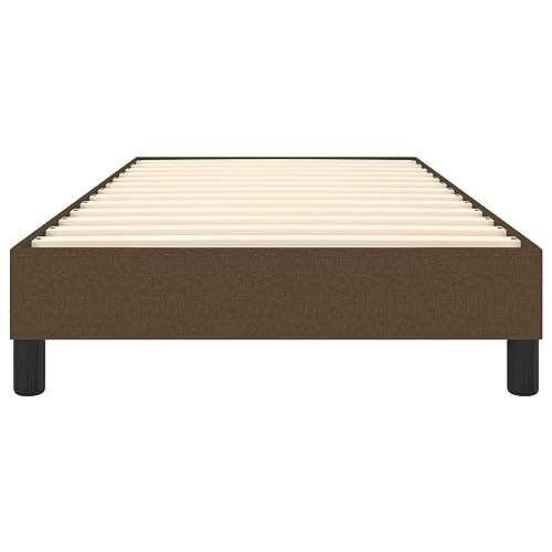 Farbe: Dunkelbraun. Material: Stoff (100% Polyester), Sperrholz, Holzwerkstoff. Gesamtabmessungen: 203 x 90 x 25 cm (L x B x H). Geeignete Matratzengröße: 90 x 200 cm (B x L) (Matratze ist nicht im Lieferumfang enthalten).
