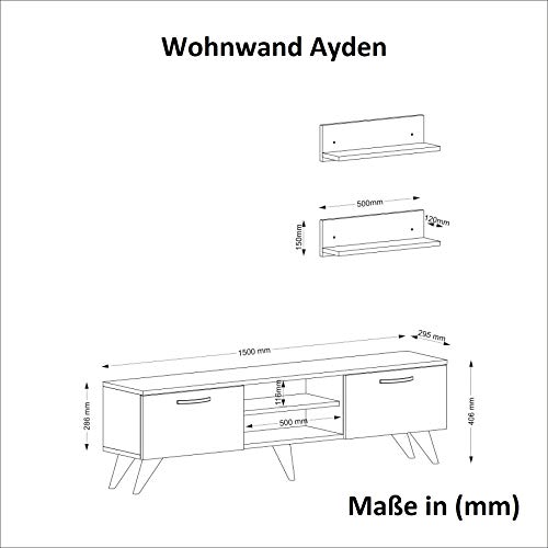 Farbe: walnuss Dunkelgrau Lieferumfang Wohnwand in Braun Schwarz Zerlegt (mit einfacher Montageanleitung) Original verpackte Neuware. Farbe: Braun Schwarz. Stil: En vogue. Maße der Wohnwand:- Breite: 150 cm höhe: 40,6 cm Schlund: 30 cm. Material: Spanplatte Hochwertige Qualität. Produktbeschreibung:- Wohnwand AYDEN in Braun Schwarz. Es ist Zeit für frischen Wind in Ihrem Zuhause. Liebhaber des modernen Designs wird diese Wohnwand von der Marke Alphamoebel begeistern. Die Wohnwand begeistert nicht wohl mit seinem zeitlosen Look, sondern bekannt als durch praktische Anpassungsfähigkeit, Nutzerfreundlichkeit und Originalität. Verleihen Sie Ihrem Zuhause ein neues Flair und subskribieren Sie Ihren Wunschartikel. Das Lowboard bietet Ihnen viele Stauräume. Zusätzlich können Sie Ihre Dekorationen und Bücher aufstellen und so die Wohnwand aktiv aufführen. Sie wollen etwas Besonderes? Dann haben Sie hier einen echten Blickfang. Montage- Lieferzustand zerlegt. Ohne Dekoration. Einfache und übersichtliche Aufbauanleitung wird mitgeliefert. Leichte und schnelle Selbstmontage dank durchdachter Konstruktion. Pflegehinweis- Zur Reinigung genügt ein feuchtes Baumwolltuch. Keine scharfen Haushaltsreiniger oder Scheuermittel verwenden. Oberfläche kann bei Bedarf mit einer Möbelpolitur behandelt werden. Versandinformationen- Ablieferung per DHL oder GLS.