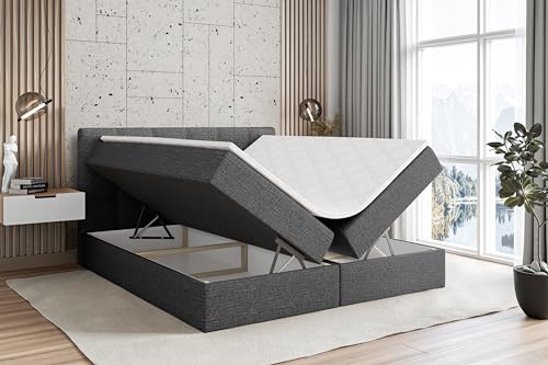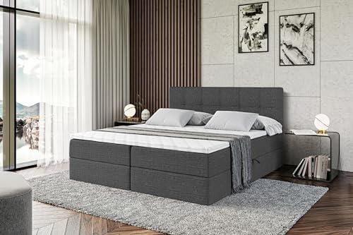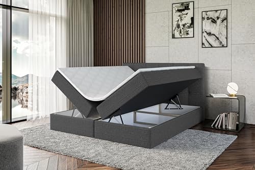 ALTDECOR Boxspringbett mit Matratze und Lattenrost, Boxbett, Topper, Polsterbett mit Bettkasten, Bett mit Stauraum H3-Matratze, Doppelbett, Springboxbett – Marce – 180×200 – Dunkelgrau
