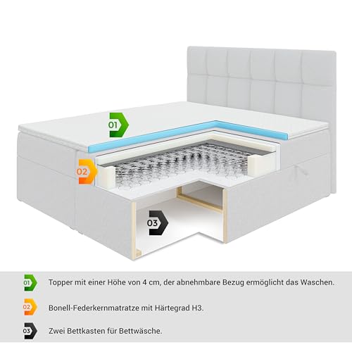 H3-Matratze & Topper: Die mittelharte Matratze (H3) mit elastischer Bonellfederung (200 Federn/m2) und PUR-Schaumstoff T30 sorgt für eine erholsame Nacht. Der 4 cm dicke Topper aus T25-PUR-Schaumstoff ist abnehmbar und waschbar in der Waschmaschine.
