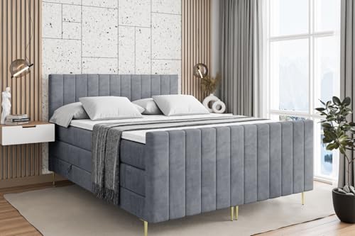 Das Boxspringbett ist ein Garant für einen langen, tiefen Schlaf und erholsame Nächte. Das Bett ist mit zwei Bettkästen ausgestattet, die reichlich Platz für Bettwäsche und Kissen bieten und für ein aufgeräumtes Schlafzimmer sorgen. Der verwendete Polsterstoff ist strapazierfähig und langlebig