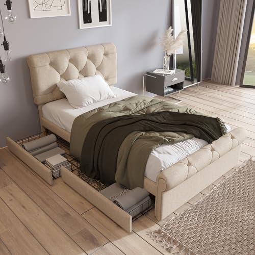Die Kombination jeglicher klassischem Scroll-Design, höhenverstellbarem Kopfteil und praktischen Schubladen macht dieses Einzelbett zu einem funktionalen Blickfang.