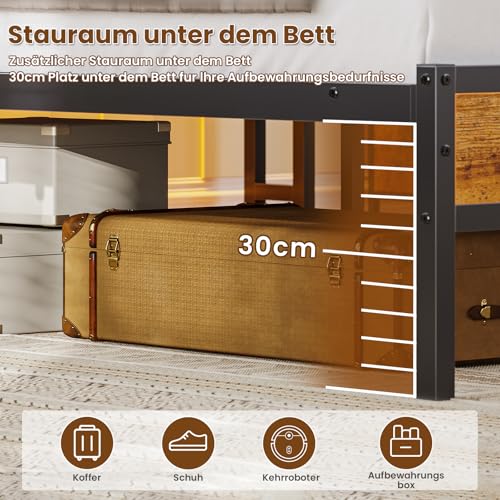 【Unbegrenzt Stauraum unter dem Bett】Mit einer Bodenfreiheit von 30 cm überzeugt der Bettrahmen durch Unbegrenzt Stauraum unter dem Bett für Koffer, Aufbewahrungsboxen usw. Um die Reinigung brauchen Sie sich keine Sorgen zu machen, der Saugroboter fährt darunter problemlos durch