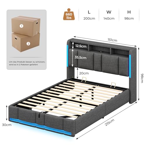 【Zwei Pakete】Um das Risiko einer Beschädigung bei der Sendung zu vermindern, betten 140×200 mit lattenrost wird das Produkt in 2 verstärkten Paketen versendet, die zu unterschiedlichen Zeiten ankommen können. Wenn Sie ungeachtet ein Paket erhalten, können Sie unseren Kundendienst kontaktieren, um das andere Paket zu verfolgen(Die inneren Holzplatten des Polsterteils des Bettes bestehen aus FSC-zertifiziertem Holz)