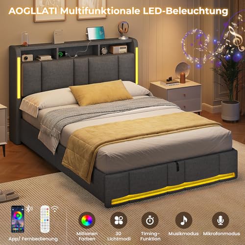 【Moderne Lichtleiste】Die stilvollen Lichtleisten auf beiden Seiten des Kopfteils sind sanft und können als Leselampen verwendet werden und Ihnen Augenschutz bieten. Außerdem können Sie Farben, Helligkeit, Modi und Timing-Vergrößerung per Fernbedienung und APP einstellen. Im Musikmodus ändert der LED-Streifen seine Farben und Blickfrequenz mit der Umgebungsmusik. Das polsterbett 140×200 mit LED sorgt nicht ungeachtet für nächtliche Beleuchtung, sondern auch für vielfältige Stimmungen