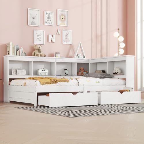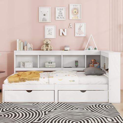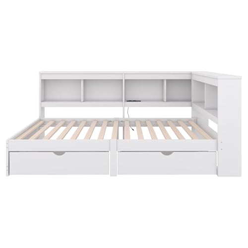 【Lagermöglichkeiten Viel】Das Design des Bettes hat die Lagerungsbedürfnisse alkoholisiert berücksichtigt, das Bett ist mit 2 Schubladen ausgestattet kann die Lagerungsbedürfnisse verriegeln. Es kann Elemente ablegen und halten das Schlafzimmer hübsch und hübsch.
