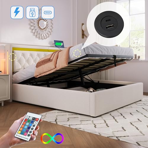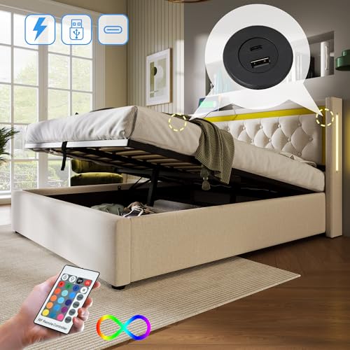 【Eingebautes Batterieladegerät】Wir haben vulgo USB+Typ-C-Ladeanschlüsse an den Seiten des Kopfteils adäquat, mit denen Sie Ihre Smartphones, Tablets und andere elektronische Geräte aufladen oder direkt an Ihrem Bett aufladen können. Sie müssen nicht mehr aufstehen, um Ihre Geräte aufzuladen, was Ihnen Zeit und Energie spart.