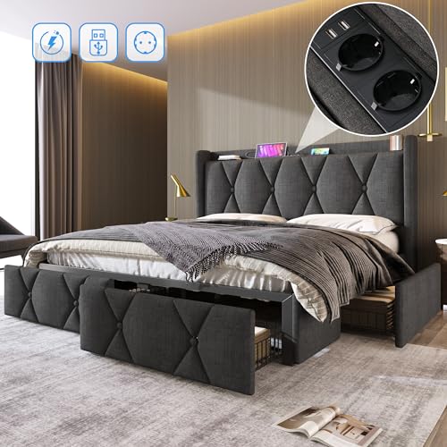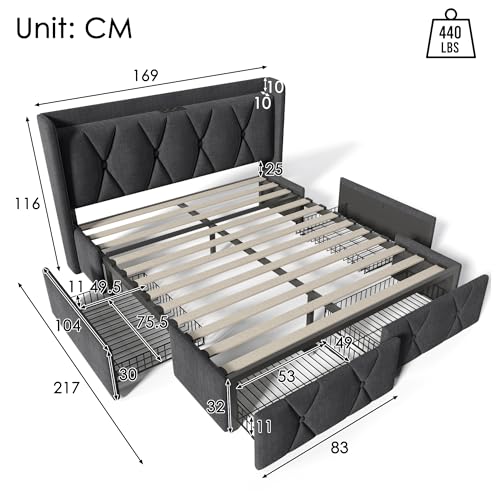 【Ein organisiertes Schlafzimmer】Vier Schubladen bieten abundant Stauraum, ideal für zusätzliches Bettzeug oder Kleidung. Da sich eine auf sämtliche Seite des Bettes und zwei am Fußende befinden, ist es wichtig, dass genügend Platz im Zimmer vorhanden ist, damit man auf jedweder vier Schubladen zugreifen kann.