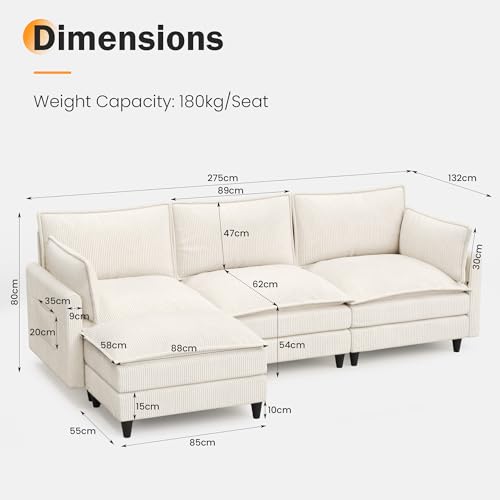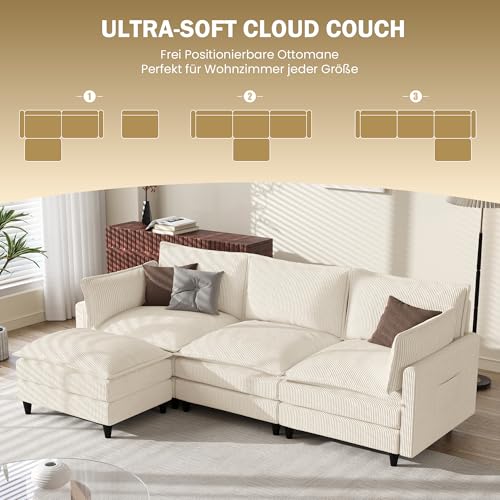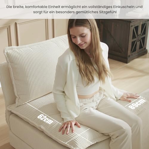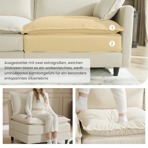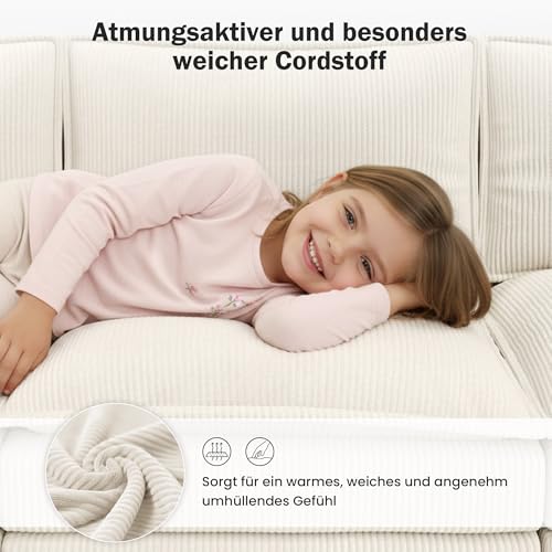 𝐀𝐛𝐧𝐞𝐡𝐦𝐛𝐚𝐫𝐞𝐫 𝐂𝐨𝐫𝐝𝐛𝐞𝐳𝐮𝐠: Der hautfreundliche Cordbezug sämtliche weichem Cord sorgt für ein gemütliches Sitz- und Liegegefühl. Der abnehmbare Sofa Überzug ist leicht zu reinigen und hält das Sofa stets sauber, hübsch und einladend für das Wohnzimmer.