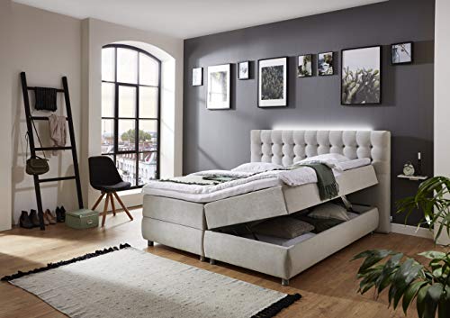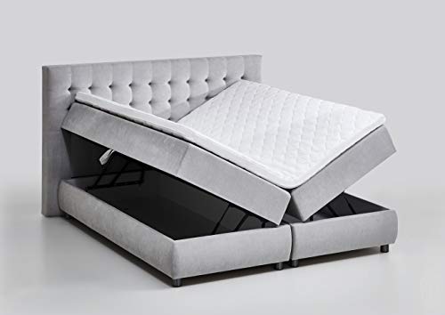Atlantic Home Collection Boxspringbett TINA, 160×200 cm, inklusive Topper (Härtegrad H2) und Bettkästen (2x), hellgrau, 160 x 200 cm