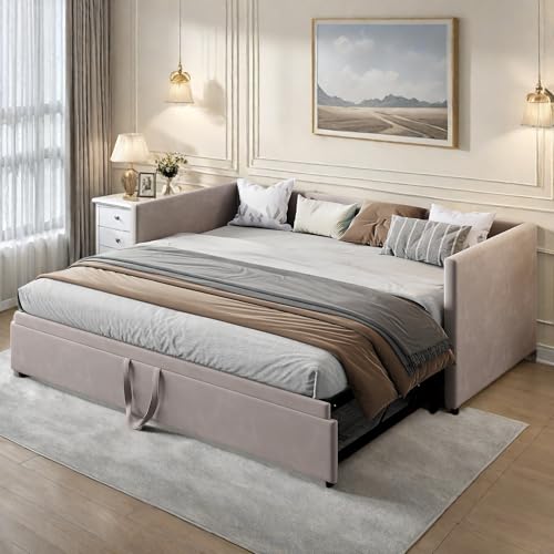 Hochwertige Materialien: Dieses Schlafsofa besteht aus hautfreundlichem Samtstoff, der Innenraum besteht aus hochwertigem MDF, leistungsfähig und langlebig, mit guter Luftdurchlässigkeit, um Ihnen einen angenehmen Schlaf zu ermöglichen