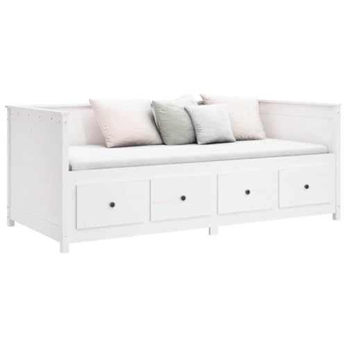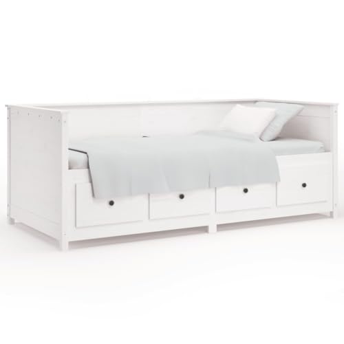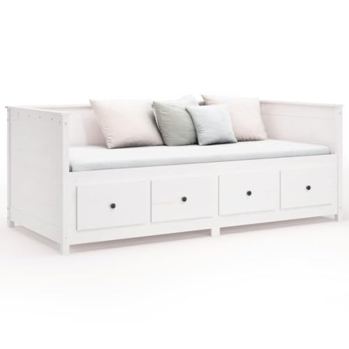 Tagesbett, weiß, 100 x 200 cm, Kiefernholz, Anzugmöbel, Betten und Accessoires, Betten und Bettrahmen. Dieser Werk – Tagesbett weiß 100 x 200 cm massives Kiefernholz – schön, dieses Tagesbett leer Holz ist perfekt für unerwartete Übernachtungsgäste und bietet gleichzeitig einen bequemen Sitzplatz indessen des Tages. Kiefer Massivholz – Kiefer allerbest ist ein schönes Naturmaterial. Kiefernholz hat eine heutig Maserung, und die Knoten verleihen dem Material seine charakteristische, rustikale Optik. 【Multifunktionales Design】Dieses Tagesbett leer Massivholz kann tagsüber als Sofa oder nachts als Bett verwendet werden, bietet eine schnelle Abtrennung für die Funktion von Übernachtungsgästen.Abundant Stauraum:Ausgestattet mit Schubladen kann dieser Bettkasten es Ihnen ermöglichen, Ihre Gegenstände gut organisiert zu halten und sie im begrenzten Wohnraum vor Staub zu schützen. Hinweis:Die Ablieferung beinhaltet dagegen ein Tagesbett. Die Matratze ist nicht im Lieferumfang enthalten. In unserem Shop finden Sie die passenden Matratzen. Jedes Produkt wird mit einer Montageanleitung in der Box für eine einfache Montage geliefert. Farbe: Weiß. Dieser Werk – Tagesbett weiß 100 x 200 cm massives Kiefernholz – schön