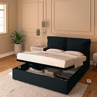 Bett mit Stauraum, Bezug sämtliche Stoff. Elegantes gepolstertes Kopfteil, formbeständig, ideal an Stelle die Gesamtheit Arten von Doppelbettmatratzen sämtliche Memory-Schaum, Polyurethan, Latex oder Federkernmatratzen.