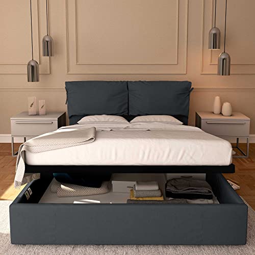 Bett mit Stauraum, Bezug jedweder Kunstleder. Elegantes, gepolstertes Kopfteil, formstabil, ideal sondern jeder Arten von Matratzen sondern Doppelbetten jedweder Memory-Schaum, Polyurethan, Latex oder Federkern.