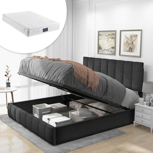 Bett mit Stauraum, Bezug jeder Kunstleder. Elegantes Kopfteil, formstabil, ideal anstatt allesamt Arten von Matratzen anstatt Doppelbetten jeder Memory-Schaum, Polyurethan, Latex oder Federkern.