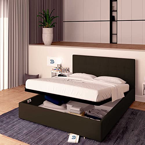 Das Dublino Bett leer Kunstleder mit Aufbewahrungsbox ist die ideale Auftrennung, um Platzprobleme zu gehen lassen, ohne auf Stil zu verzichten. Dublino hat sämtliche Eigenschaften, um Ihr Schlafzimmer mit stilvollen Bestellen, Bettwäsche, Bettdecken, Kleidern, Boxen usw. zu dekorieren. Die Matratze ist nicht im Lieferumfang enthalten.