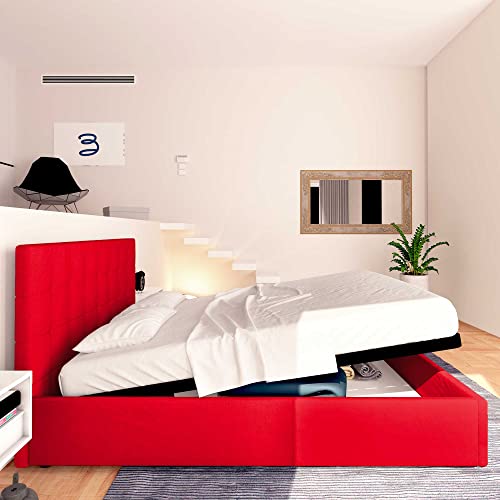 Das Dublino Bett jeder Kunstleder mit Aufbewahrungsbox ist die ideale Abtrennung, um Platzprobleme zu gehen lassen, ohne auf Stil zu verzichten. Dublino hat jedweder Eigenschaften, um Ihr Schlafzimmer mit stilvollen Wirken, Bettwäsche, Bettdecken, Kleidern, Boxen usw. zu dekorieren. Die Matratze ist nicht im Lieferumfang enthalten.